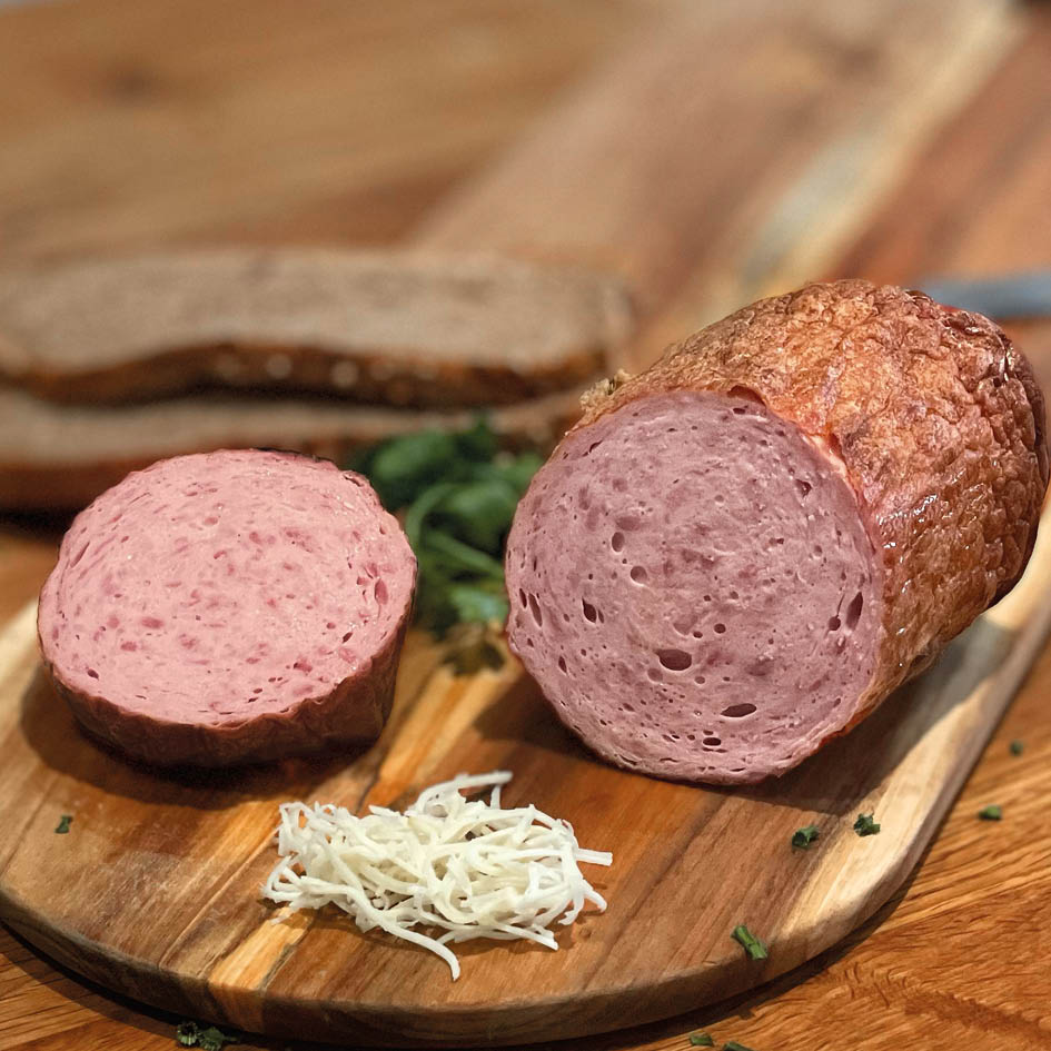 Der Klassiker. Traditionell gewürzt, mit Schweinefleisch, Rindfleisch und Speck. Saftig, würzig, mit der typischen Leberkäs-Note, die jeder kennt und liebt. So schmeckt Bayern. Perfekt zu: Kartoffelsalat, süßem Senf, frischem Brot