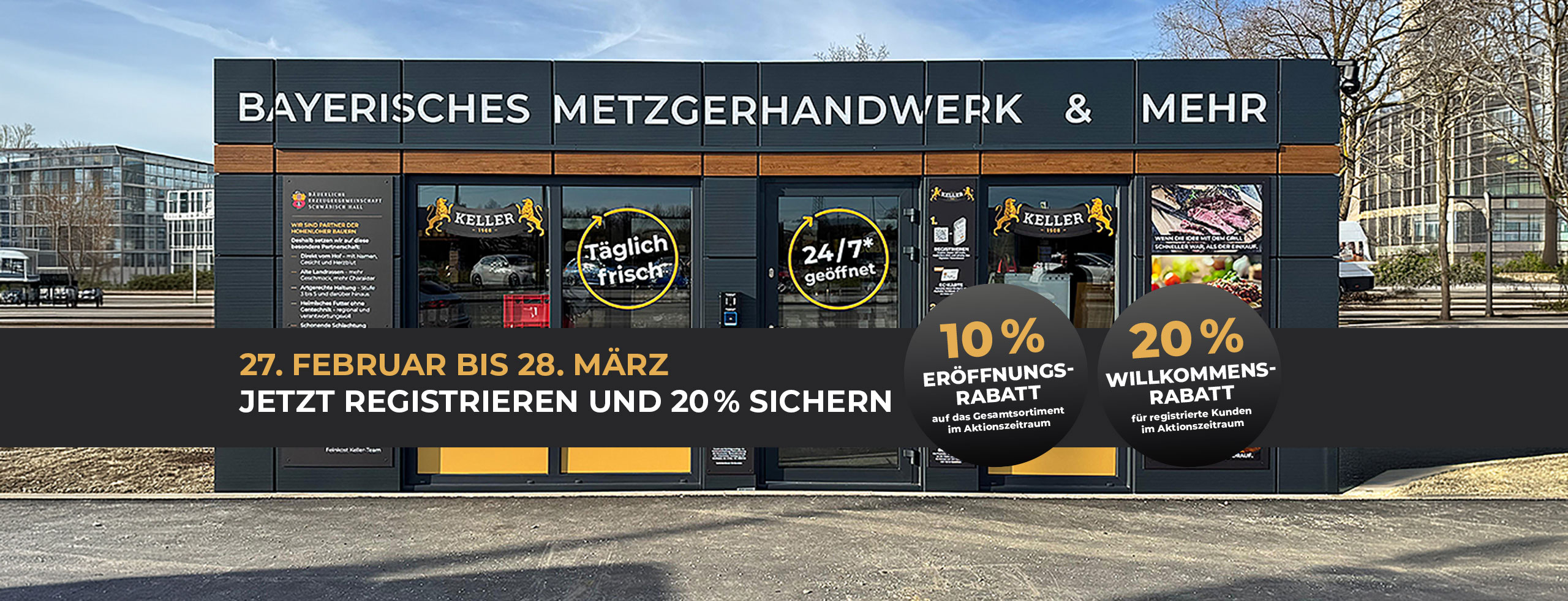 Seit dem 27. Februar 2026 sind wir für Sie da – rund um die Uhr, sieben Tage die Woche. Mit unserem modernen Smart Store in der Industriestraße 10 bringen wir echte Handwerksqualität nach Ergolding: Fleischsommelier-Spezialitäten, regionale Feinkost und ausgewählte Produkte für Ihren Alltag – wann immer Sie wollen.